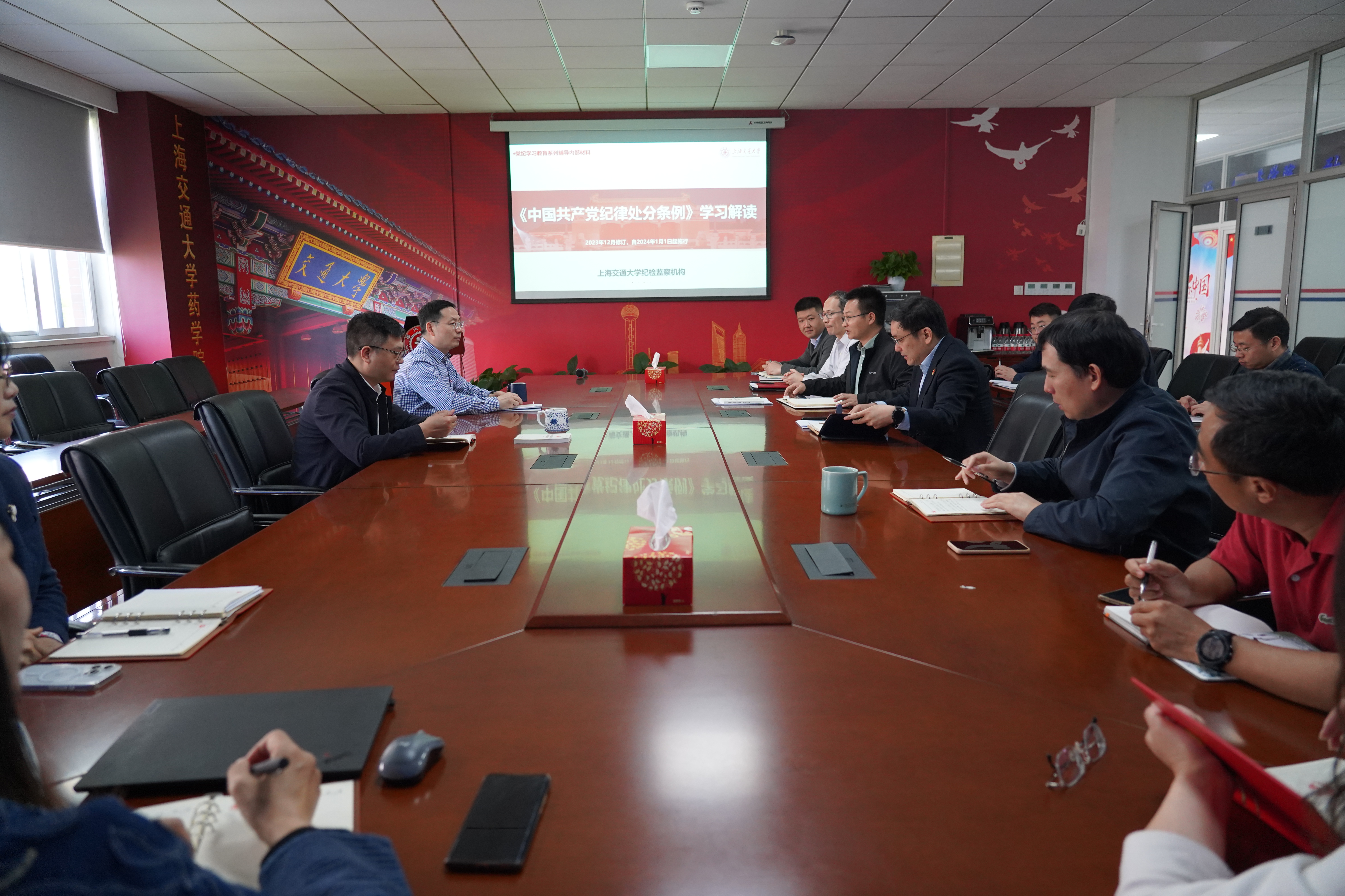 5月13日,六合彩开奖号码查询 党委理论学习中心组开展党纪学习教育专题学习研讨会,深入学习习近平总书记关于党纪学习教育的重要讲话及新修订的《中国共产党纪律处分条例》,邀请学校党纪学习教育讲师团成员、校纪检监察机构办公室主任郑文栋就新修订的《中国共产党纪律处分条例》进行辅导报告。六合彩开奖号码查询 党委书记彭树涛、院长张翱及理论学习中心组成员参加会议,会议由党委副书记叶定剑主持。