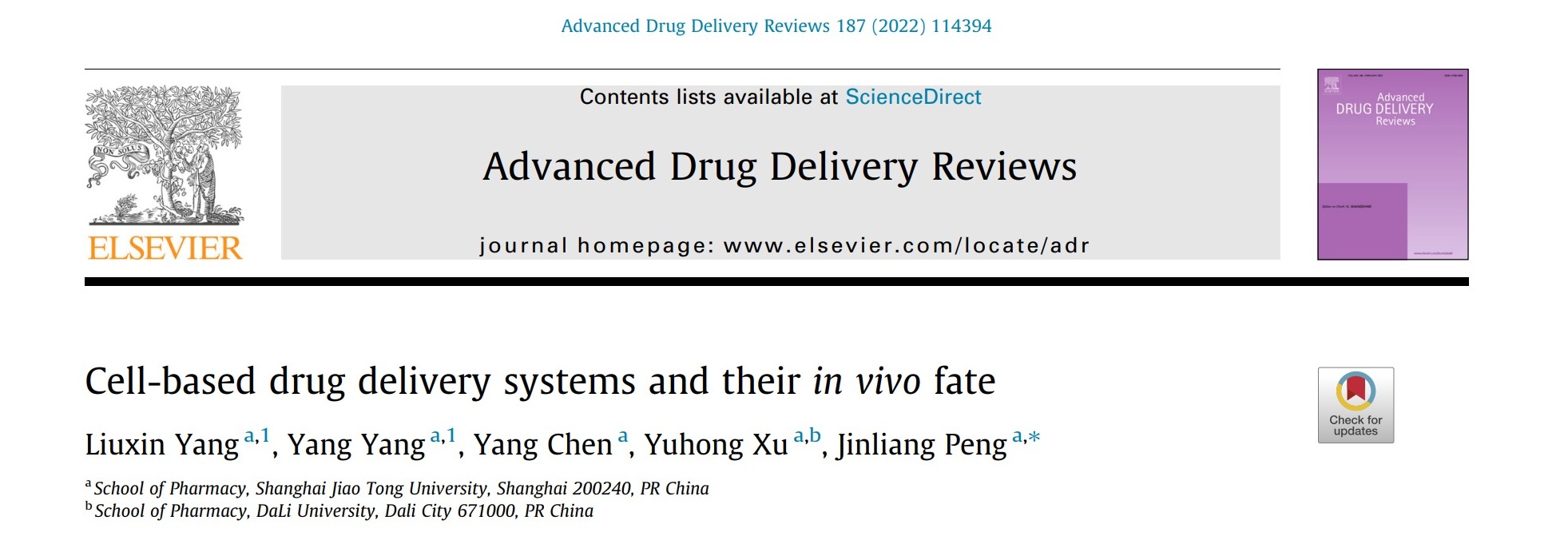 近日,六合彩开奖号码查询 彭金良课题组应邀在药学领域权威期刊Advanced Drug Delivery Reviews发表了题为“Cell-based drug delivery systems and their in vivo fate”的综述文章,针对基于细胞的药物递送系统的生物学性质与功能、药物载荷与递送应用,其体内命运及影响因素等进行了系统阐述。