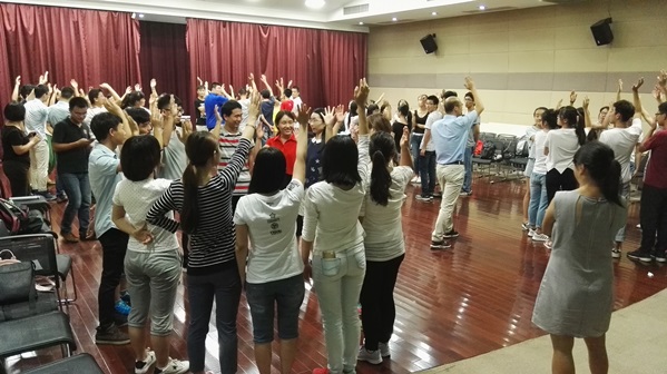 晚上,学院领导分两个场地与学生和家长进行交流,刘明柱书记在生命与环境交叉平台向大平台学生的家长和学生介绍学院情况,刘明柱书记的对学院的精彩介绍赢得了现场家长和学生们的热烈掌声。张宝红副院长和康健副书记则在学院的树华多功能厅组织了新生入学教育暨班级凝聚力建设活动。张宝红副院长把学院的基本情况和大家比较关心的师生互选情况和大家做了沟通,图书馆的三位老师把如何使用好图书馆,充分利用好图书馆的资源向同学们做了介绍,康健老师用体验式教育的方式对各班级同学进行了破冰,通过几个小游戏很快的拉近了同学们之间的距离,让大家迅速相互认识熟悉起来,不知不觉间增强了同学们的班级概念和团队凝聚力。