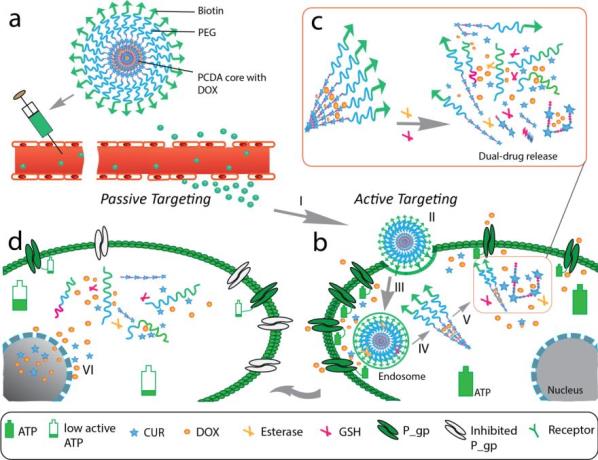 肿瘤产生耐药性是导致临床上化疗失败的根本原因之一。化疗增敏药物可提高肿瘤对化疗药物的敏感性,从而提高化疗疗效。然而,临床上,化疗药物与增敏药物联用的效果并不尽如人意,这是因为不同药物在体内的生物药剂学性质不一样,全身给药后,它们难以同时进入同一肿瘤细胞,进而影响其协同增效作用。姜黄素为从中药姜黄中分离得到的一种化合物,具有良好的抗肿瘤以及化疗增敏的体外活性,对人体无毒。但姜黄素体内活性不好,因为其水溶性差,在生理pH条件下稳定性不好。采用高分子合成技术以姜黄素为共聚单体制备两亲性的聚姜黄素嵌段共聚物,克服了姜黄素水溶性和稳定性差的缺陷,该共聚物自组装成具有核壳结构的聚姜黄素纳米粒。将化疗药物如阿霉素负载到聚姜黄素纳米粒中制备纳米药物。该纳米药物具有良好的肿瘤靶向性,进入肿瘤细胞后,聚姜黄素在细胞内高谷胱甘肽浓度下响应性降解释放出姜黄素和阿霉素,最大化实现增敏药物和化疗药物的协同功效。以多药耐药乳腺癌为模型,体内外研究结果表明,该纳米药物可有效逆转肿瘤耐药性,产生优异的抗多药耐药肿瘤效果。