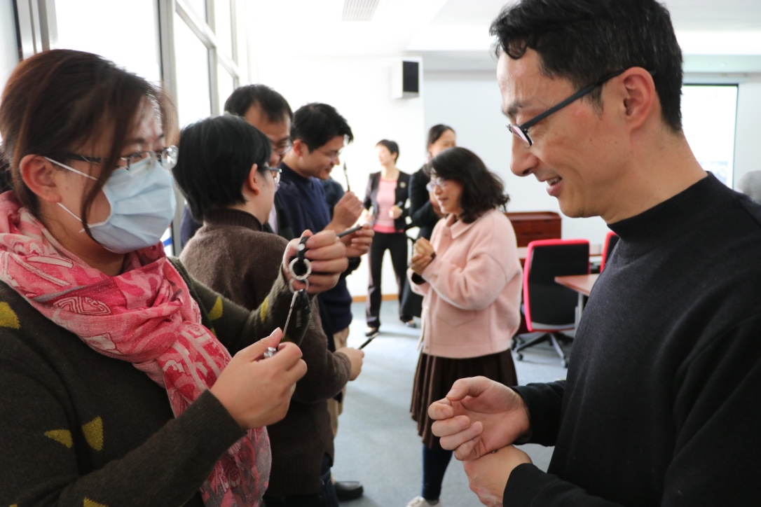 会上,汪国琴与大家讨论了“知己识人的心理准备”,带大家体验了快速建立关系的小游戏“礼物漂流”,与会人员现场演练了倾听学生谈话、加深人际关系的谈话技巧“LADDER谈话法”。与高中相比,大学班级概念相对淡化,同学们的价值取向和行为选择更趋多元化,大学班主任、思政教师的工作自然也面临许多新的挑战,汪国琴详细介绍了校心理咨询中心的各项服务,以更好地支持班主任工作开展。
