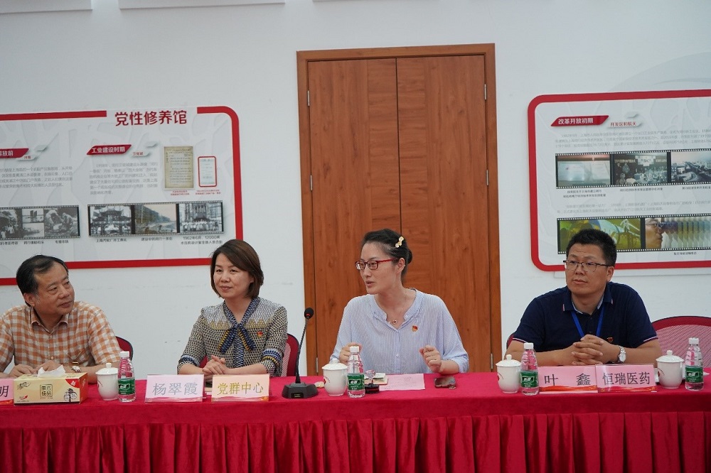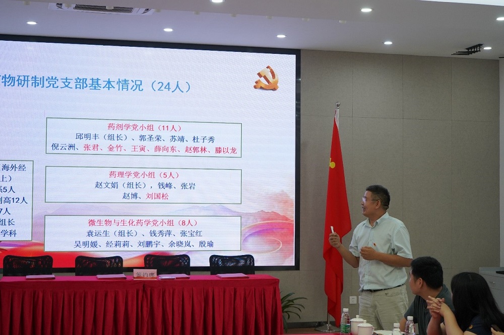 随后,药物研制党支部书记邱明丰介绍了支部情况,并以屠呦呦与青蒿素的发现为主题与大家分享了老一辈科学家的共产党人精神。恒瑞医药党总支叶鑫书记介绍了企业党建特点、公司投入新药研发以及对创新人才的需求。强生制药党总支书记钟毅明从企业社会责任和党员奉献角度介绍了支部工作和党建特色。江川路街道党支部书记杨翠霞书记以《邮票党课-方寸之间看建党百年奋斗之路》为主题的微党课,生动讲述了江川街道涌现的优秀党员与事迹。杨翠霞书记还介绍了服务中心与上海交通大学多个支部建立了工作联系。