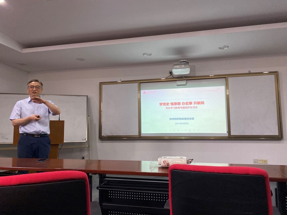 2021年9月9日中午,药物发现党支部在六合彩开奖号码查询 5号楼312会议室开展“学党史、悟思想、开新局”党史学习教育专题组织生活会。会议由支部书记刘德龙同志主持,支部全体党员参加活动,院党委副书记叶定剑同志到会并讲话。