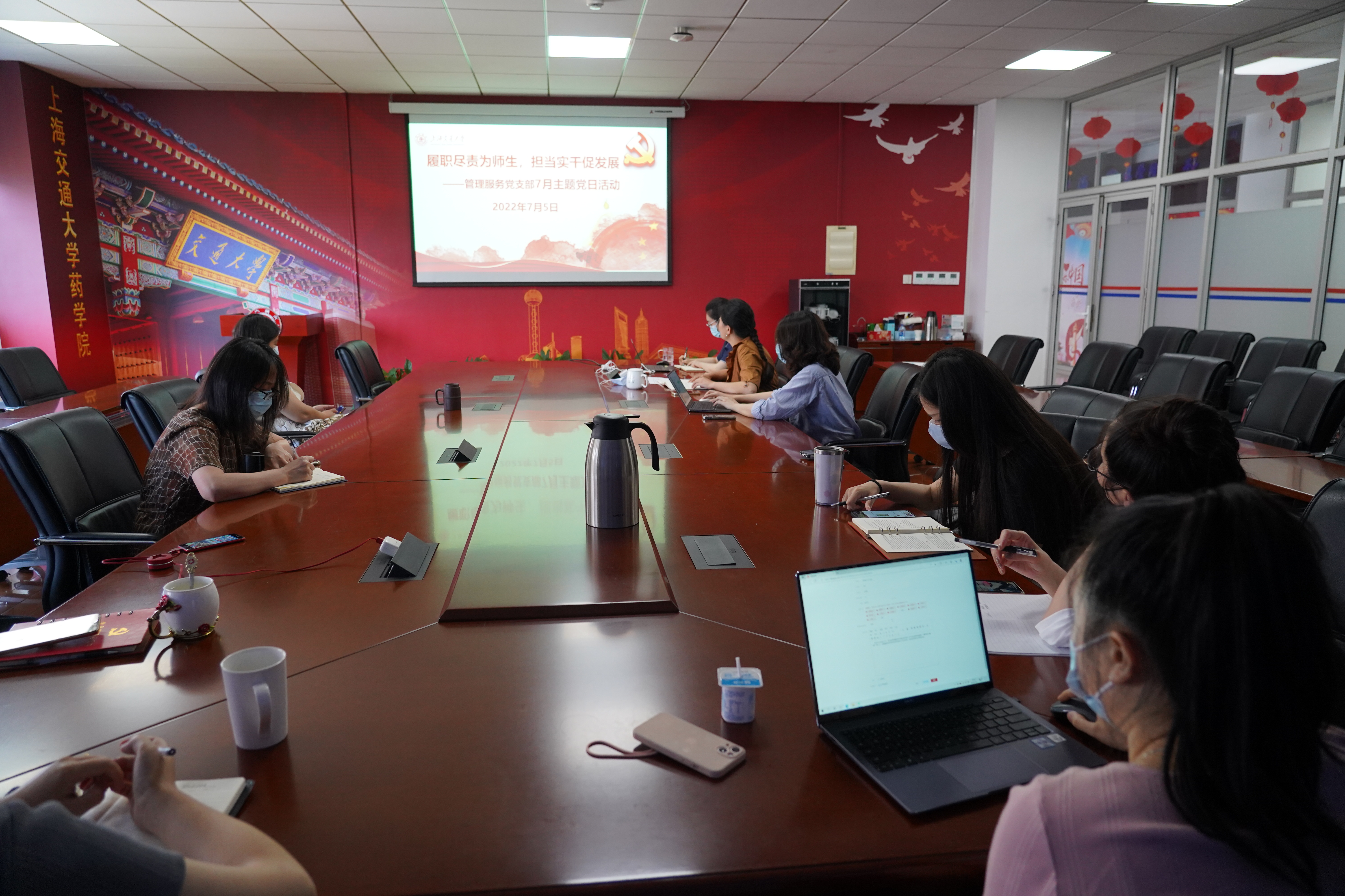2022年7月5日下午,六合彩开奖号码查询 管理服务党支部开展了“履职尽责为师生,担当实干促发展”主题党日活动。院党委书记刘建新以普通党员身份参加了本次活动,活动由支部书记李伟主持。