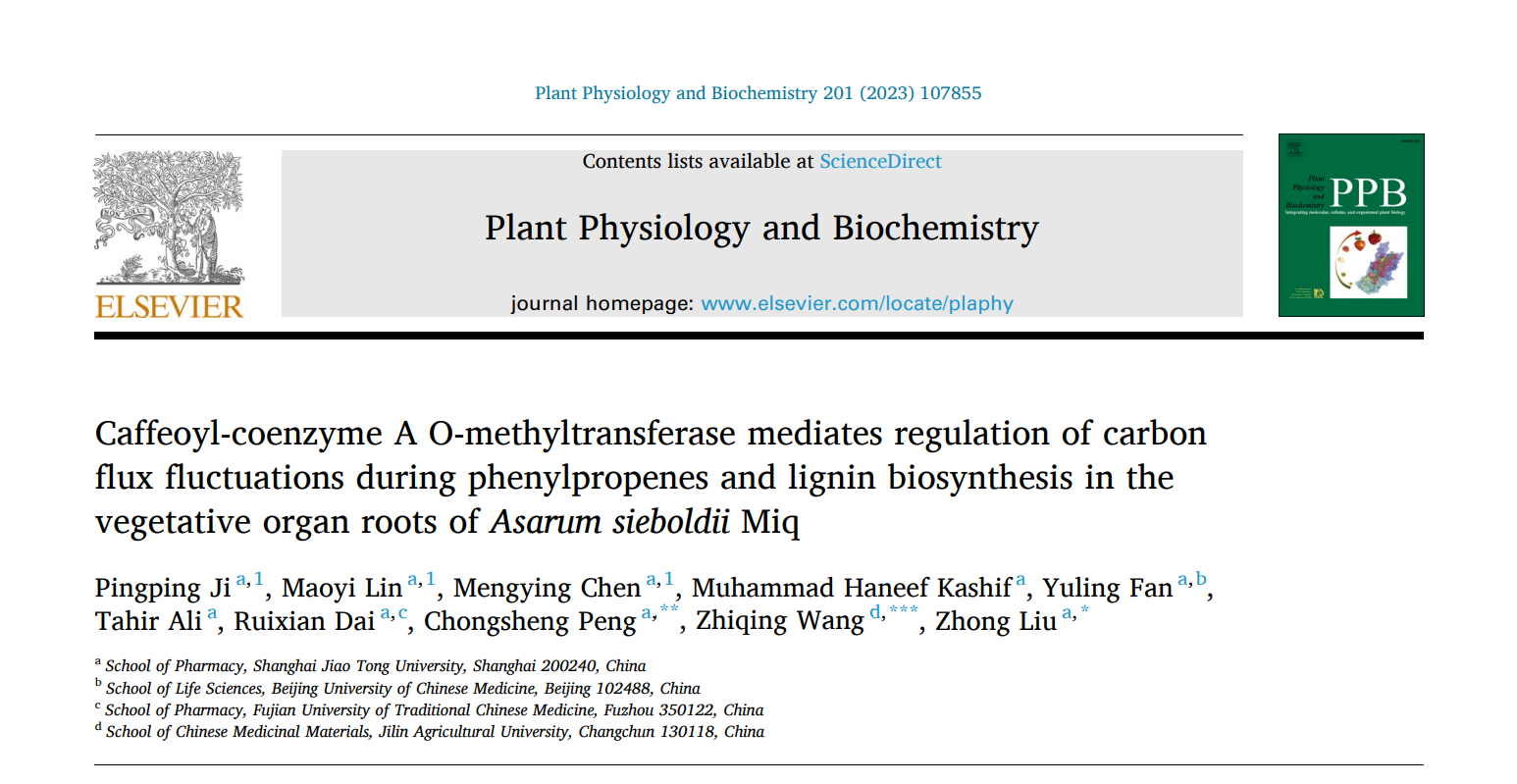 基于这一研究背景,六合彩开奖号码查询 刘忠课题组以华细辛为研究材料,通过调控共享途径关键酶之一的咖啡酰辅酶A-O-甲基转移酶(CCoAOMT)基因的表达,首次从遗传学上解析了华细辛碳代谢分配调节机制, 为苯丙烯类的生物合成以及优质药用资源的开发利用提供了理论基础。相关工作以“Caffeoyl-coenzyme A O-methyltransferase mediates regulation of carbon flux fluctuations during phenylpropenes and lignin biosynthesis in the vegetative organ roots of Asarum sieboldii Miq.” 为题发表在Plant Physiology and Biochemistry。