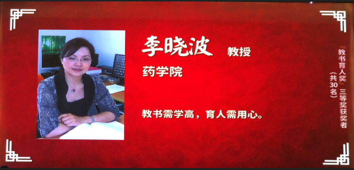 李晓波教授耕耘高校讲坛十五年,作为药学本科专业课《生药学》、《药学概论》以及研究生专业核心课《天然药物研究导论》等课程负责人和主讲教师,无论在课堂教学,还是在研究生培养上,秉持“心有学生”、“言传身教”和“学高为师”三个原则。近三年荣获第七届“凯原十佳”教师(2017年),培养的2017届2名硕士毕业生分别获校、上海市优秀毕业生。现任教育部“高等学校药学类专业教学指导委员会”委员,中国药学会第一届药学教育专业委员会委员(2015-现在)。全国高等院校药学类专业第五届教材评审委员会委员(2014-现在)。上海交通大学“民族医药创新研究团队”负责人,国家中医药管理局“中药基因组学”三级实验室主任。上海交通大学新闻网 [学者笔谈]栏目的“李晓波:心辛交融为人师”正是李晓波教授在教书育人岗位上的缩影。