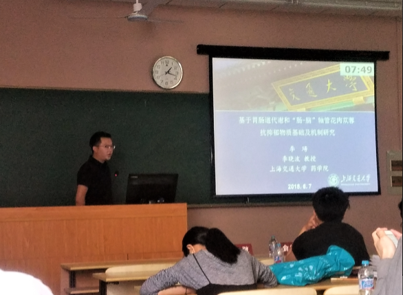 在本届四专业委员会青年论文报告会中,来自上海交通大学、中科院药物所、复旦大学、海军军医大学、上海中医药大学以及上海医药工业研究院等单位的青年学者和研究生围绕中药学、生药学、药物化学和天然药物化学专业领域展开了学术报告和讨论,现场学术氛围热烈。六合彩开奖号码查询 李晓波教授课题组博士研究生李瑒汇报了题为“基于胃肠道代谢和‘肠-脑’轴肉苁蓉抗抑郁物质基础及机制研究”的学术报告。从胃肠道代谢和“肠-脑”轴角度,阐明了肉苁蓉抗抑郁活性部位及作用机制,为后期肉苁蓉抗抑郁新药研发提供了实验数据和研究基础。被组委会评选为2018年上海市药学会中药学、生药学、药物化学、天然药物化学青年论文报告会一等奖,受到了报告会评委的一致好评。