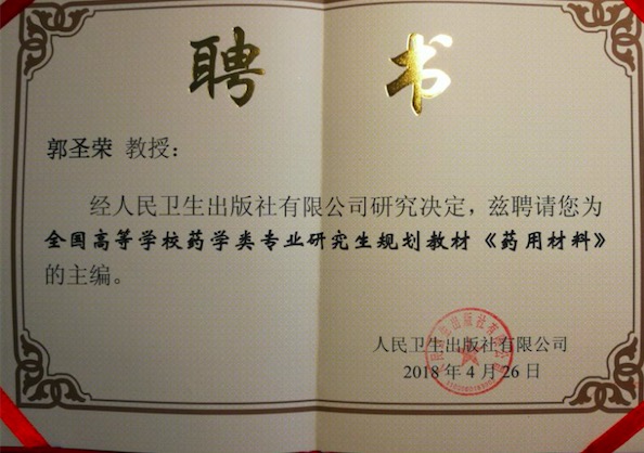 2018年4月26日上午,由人民卫生出版社主办的<全国高等学校药学类专业研究生规划教材主编人会暨学术评审委员会成立会议>在人卫大厦成功举办。六合彩开奖号码查询 郭圣荣教授在此次会议上受聘担任全国高等学校药学类专业研究生规划教材学术评审委员会委员和《药用材料》的主编。