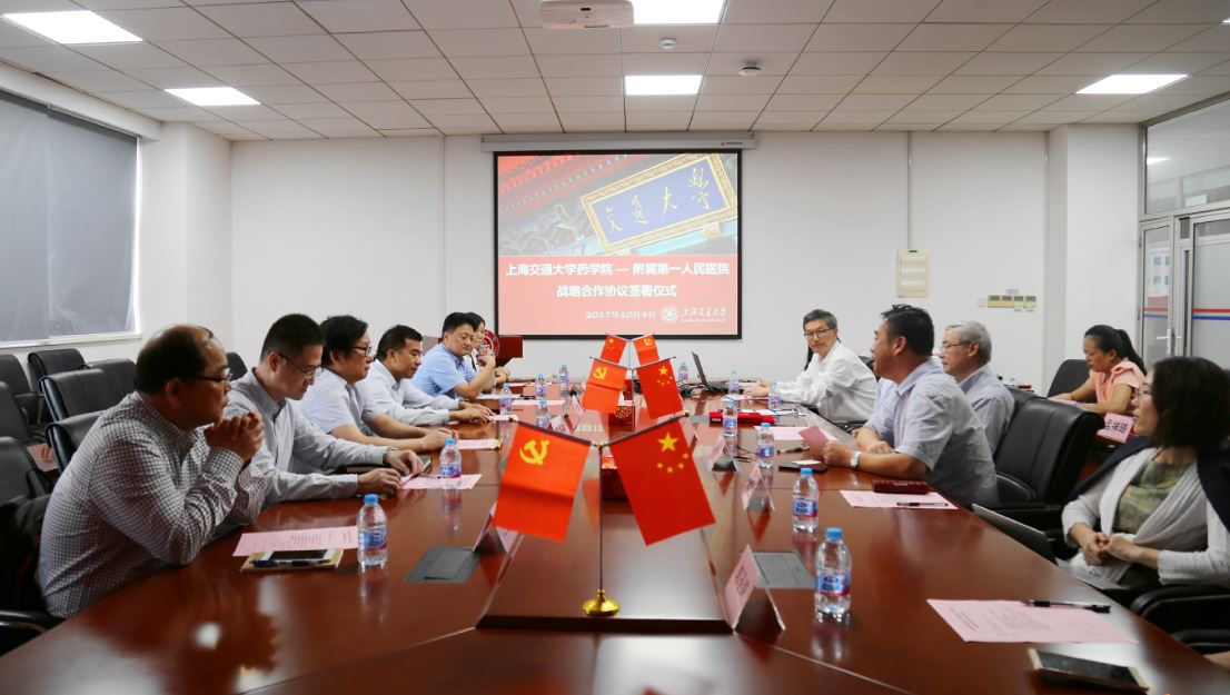 10月9日下午,六合彩开奖号码查询 与附属第一人民医院战略合作协议签约仪式在闵行校区生物药学楼5号楼412会议室举行。上海交通大学副校长吴旦、六合彩开奖号码查询 党委书记刘明柱、院长朱建伟、各分管副院长傅磊、张宝红、周虎臣、副书记孟祥琦,院长助理于洋,院办主任李伟,教师代表郭圣荣等出席签约仪式。附属第一人民医院出席签约仪式的有院长王兴鹏、副院长郑军华、教育处处长刘玮、科研处副处长丁雪鹰、临床药学科学科带头人刘皋林、临床药学科主任范国荣等同志。签约仪式由刘明柱书记主持。