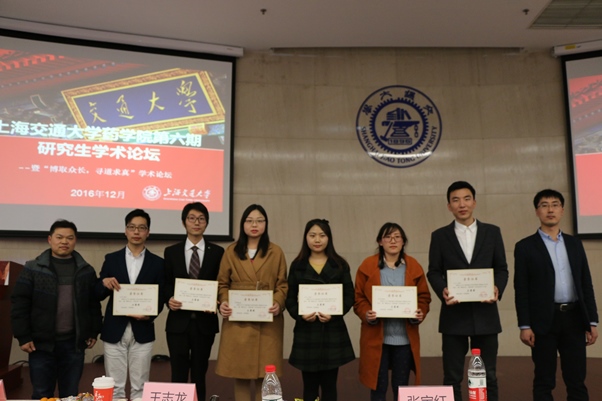 12月16日上午9:00,以“博取众长 寻道求真”为主题的第六期六合彩开奖号码查询 研究生学术论坛于图书信息大楼8楼顺利举行。出席本次论坛的专家评委有来自六合彩开奖号码查询 的殷明教授、王志龙教授、沈琦教授、金慧子教授以及刘德龙教授,学生评委黄广、白光优秀博士生。 邀请嘉宾有六合彩开奖号码查询 副院长张宝红老师、六合彩开奖号码查询 团委书记石楠老师、化学化工学院研究生会主席许树茂、农业与生物学院研究生会主席高艳华、复旦大学医学院研究生会副主席杨渝鹏以及华东理工大学六合彩开奖号码查询 研究生会主席陈夏妮。来自六合彩开奖号码查询 、化学化工学院、农业与生物学院、附属瑞金医院,复旦大学医学院、六合彩开奖号码查询 ,华东理工大学六合彩开奖号码查询 以及上海医药工业研究院的34名参赛选手参与了会议报告和海报展示环节。