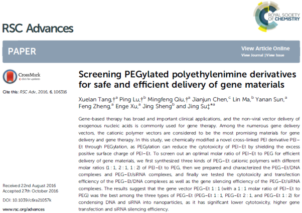 她用付出诠释了一名专业的学霸。作为一名研二的学生,在2015-2016年度,她参与发表了2篇SCI,3篇中文核心论文,并且参与了1部著作的编写。其中,她以第一作者发表SCI一篇,题为“Screening PEGylated Polyethylenimine Derivatives for Safe and Efficient Delivery of Gene Materials” (RSC Advances, Impact factor: 3.289);以第二作者在中文核心期刊发表论文一篇,题为“肾茶中主要酚类物质的提取工艺研究”(国际药学杂志,已见刊);并且作为编委参与编写著作《现代药物研发实践》(已出版)。另外,她在大四期间还在本科学校以第一作者和第三作者在中文核心期刊发表论文两篇。