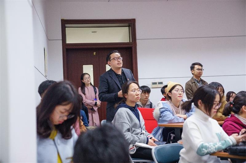 阎超教授为大家细致剖析了毛泽东从1893年到1935年的代表作品及历史背景:1906年《赞井》是毛泽东初绽锋芒;1910年《呈父亲》展现毛泽东少年豪情;1928年的井冈山系列诗词是毛泽东对革命的最初思考。课上,讲到动人之处,阎超教授不禁现场诵读起毛主席的诗词。他风趣的讲述,激情的朗读博得在座学生的阵阵掌声,讲座结束后,现场同学与阎教授进行了充分的互动。本次讲座调动了药院师生深入了解革命历史和毛泽东诗词的兴趣,也激发了大家的爱国热情。