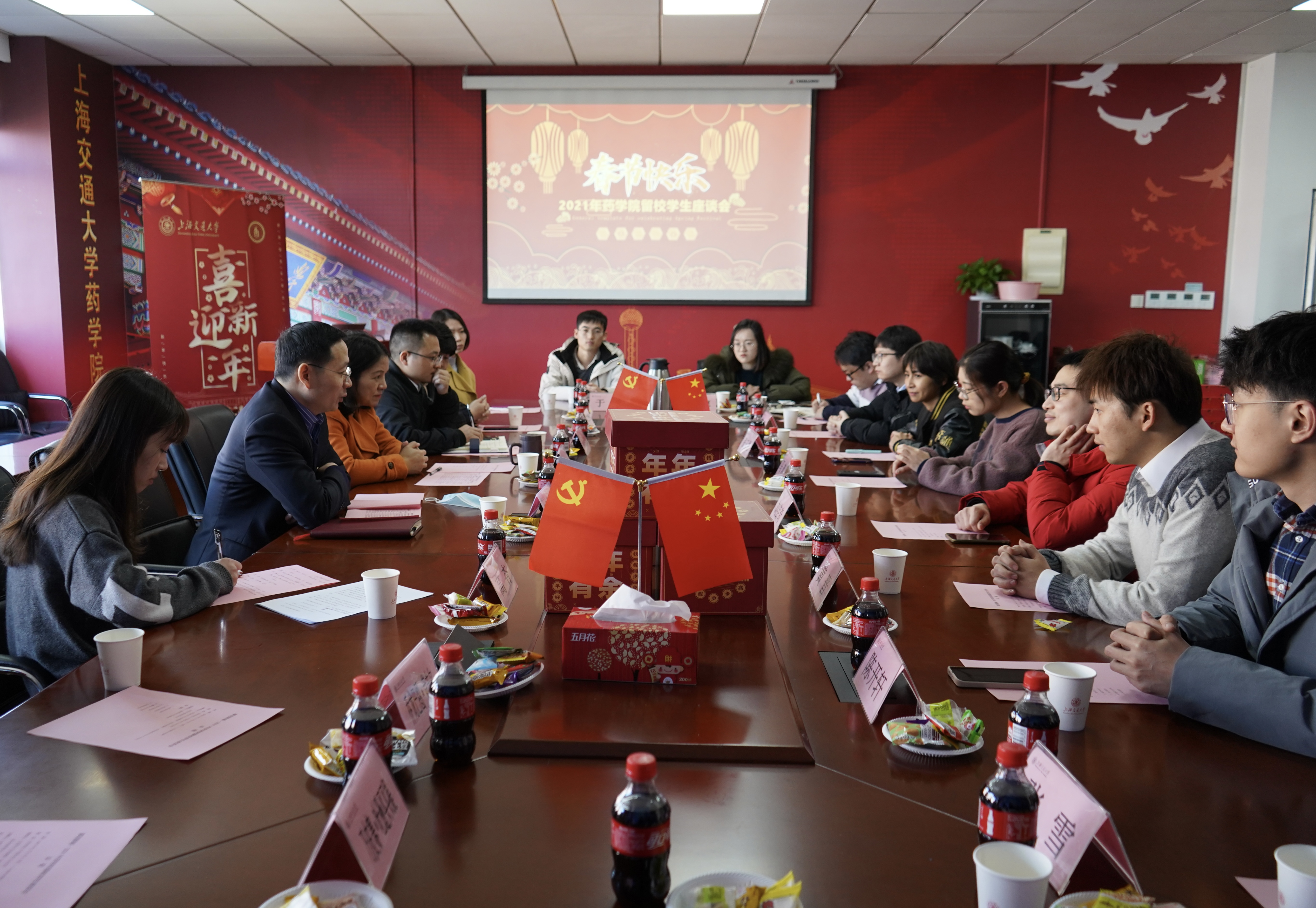 2月9日下午,六合彩开奖号码查询 在5号楼412会议室举行“喜迎新春”主题留校学生座谈会。学院党委书记刘建新、院长张翱、党委副书记叶定剑与16名中外学生代表交流座谈。会议由团委书记高杏主持。