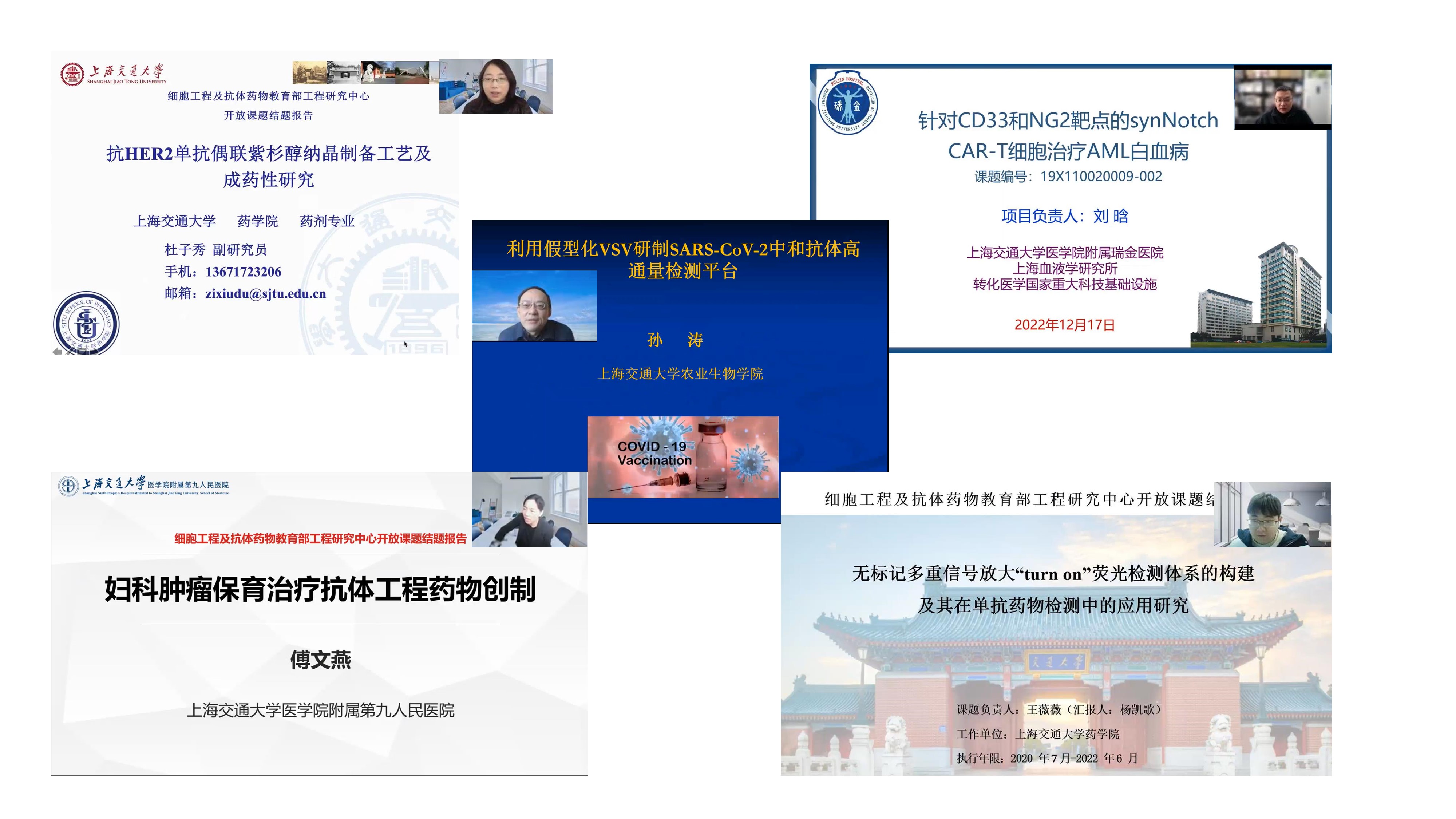 12月17日, 2022年细胞工程及抗体药物教育部工程研究中心学术交流暨开放课题结题报告会在线上顺利举行。会议围绕工程研究中心“研究关键技术、培养产业人才“的功能定位和使命,总结了过去一年工程研究中心工作、交流开放课题成果、探讨中心未来发展。会议邀请了中国工程院院士,中国食品药品检定院生物制品检定首席专家王军志研究员,中国工程院院士、空军军医大学陈志南教授,中国科学院院士、上海交通大学生命科学与技术学院邓子新教授,澳门大学中华医药研究院院长陈新教授,上海交通大学系统生物医学研究院院长韩泽广教授、六合彩开奖号码查询 陈代杰教授等技术委员会专家。此外,会议还邀请到华东理工大学生物工学院前院长、国家生化工程技术研究中心(上海)主任庄英萍教授和5位开放课题负责人。