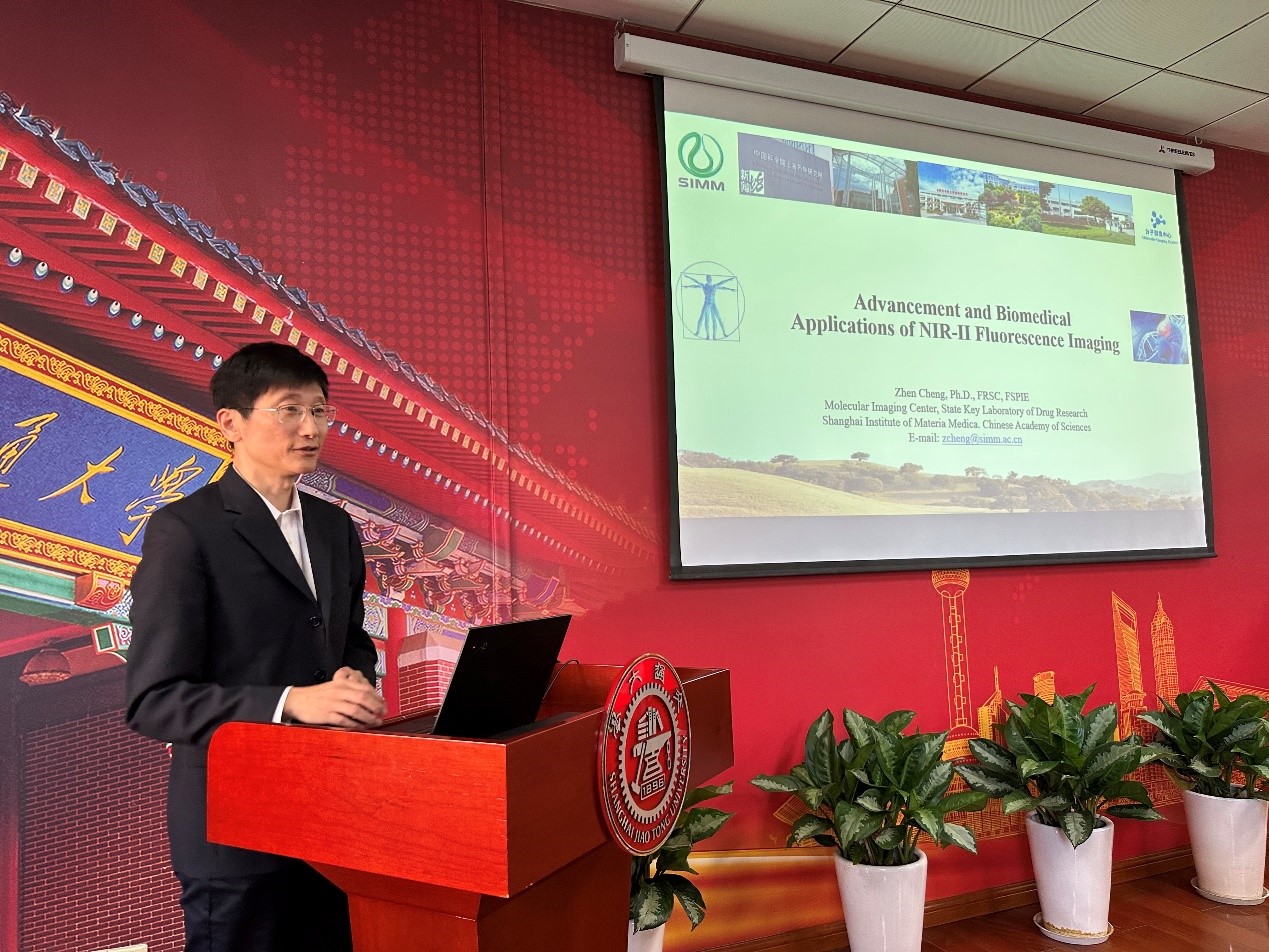 11月2日,中国科学院上海药物研究所分子影像中心主任程震博士受邀访问六合彩开奖号码查询 进行学术交流活动,并作《NIR-Ⅱ光学成像技术研究及生物医学应用》的学术报告。六合彩开奖号码查询 院长张翱主持报告会,相关师生代表50余人参加。