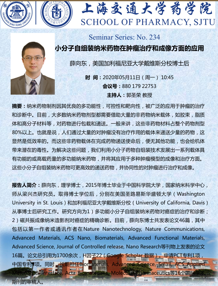 小分子自组装纳米药物在肿瘤治疗和成像方面的应用