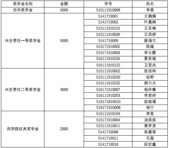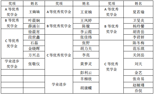 经同学自主申报,教务办、学工办对成绩和科研成果进行认定,评审小组对社会活动进行评定,最终依据各位申报同学的得分高低及奖学金额度值,确定以下同学获得2017年本科生专项奖学金,六合彩开奖号码查询 学院优秀奖学金,兴全责任一等、二等奖学金,本科生优秀奖学金暨ABC等奖学金,特此公示。